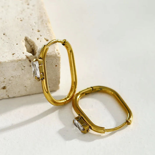 CABE Rectangle Hoops with Solitaire Rectangle Zirconia