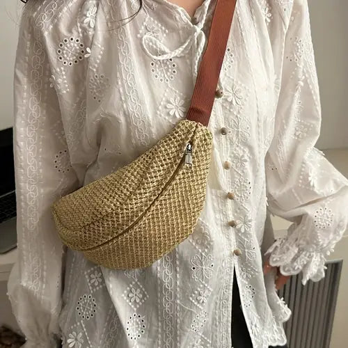 This playful woven straw crossbody bag is your new go-to for beach days and casual adventures. Featuring a brown adjustable shoulder strap, it fits just right for hands-free fun. Keep your essentials safe with secure zipper pockets and a handy phone slot, all lined with lightweight polyester for easy cleaning. Crafted from durable synthetic material, it’s perfect for travel or a sunny vacation. Minimalist yet charming, this bag combines style and practicality effortlessly.