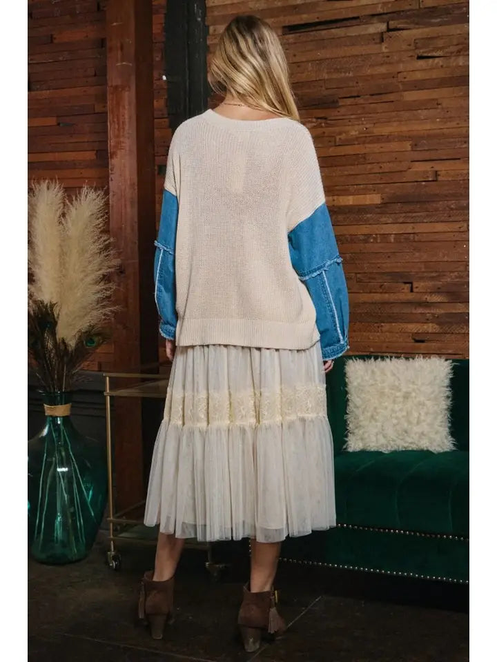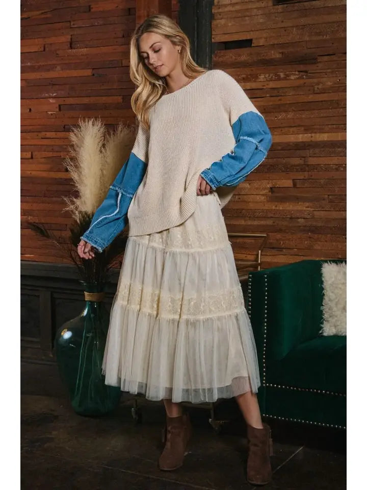 Add a flirty twist to your wardrobe with this creme Mesh Tired Midi Skirt. Its layered mesh design creates a fun, airy look that moves beautifully with every step. Perfect for twirling through sunny days or dancing the night away, this skirt brings playful elegance to any outfit.