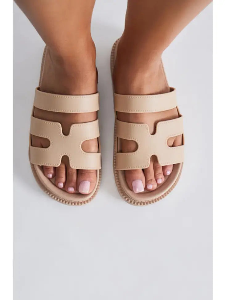 Nude Slip on Harrison sandals with adjustable top strap. 1.5 sole height