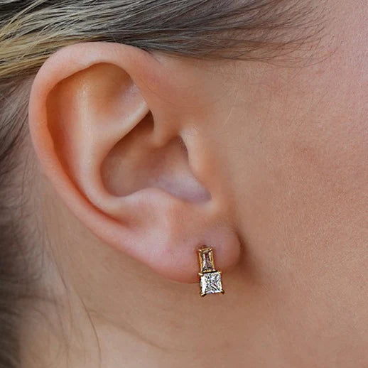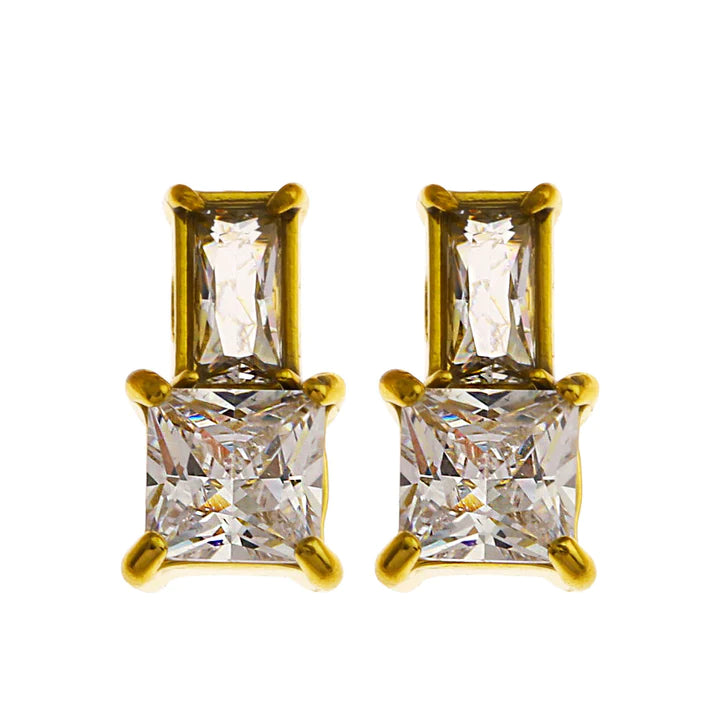 Shine in style. Add a touch of retro elegance to your look with this duo encased mini clear crystal & zirconia studs. Subtle, pretty and eye-catching; perfect for any outfit.