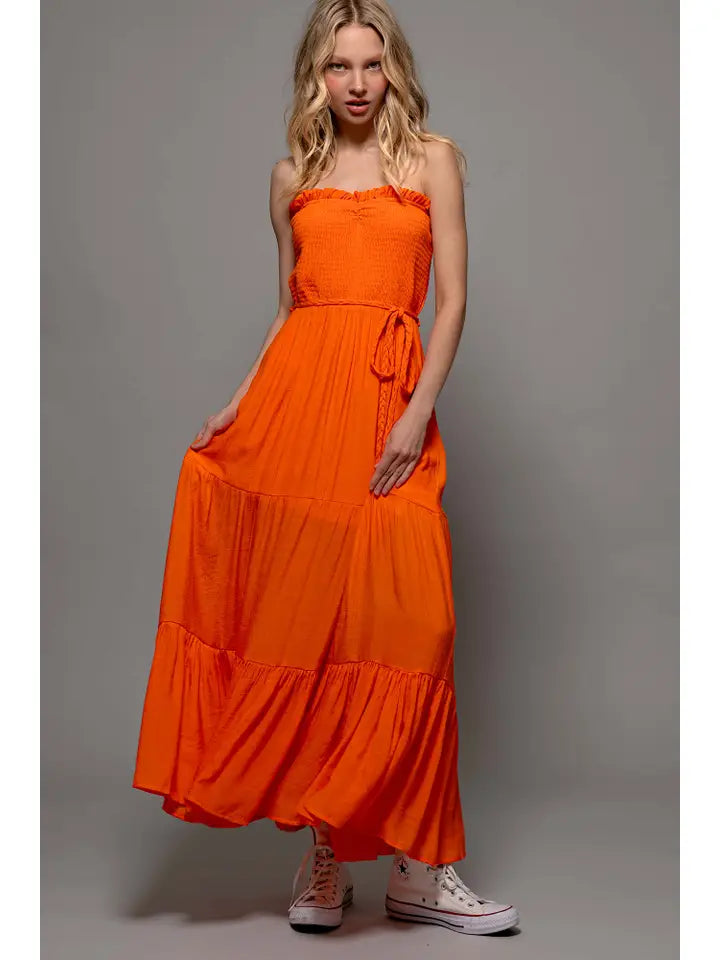 Features: • 65% Rayon 35% Polyester • S-L: 2-2-2 • Smocked bodice design • Three-tiered skirt detail • Braided tassel belt • Made in China