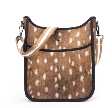 Spotted Fawn Neoprene Messenger Bag Stripe Strap