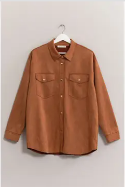Step out with effortless charm in this oversized Camel suede shirt, complete with a handy pockets for your essentials. The soft suede fabric feels cozy while the relaxed fit invites you to move freely and playfully throughout your day. Whether layered or worn solo, it adds a stylish edge with a touch of whimsy to your wardrobe.