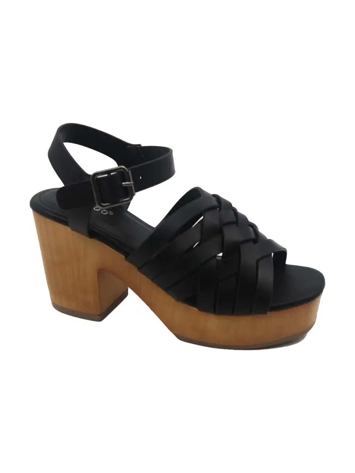 Wooden Clogs, with leather straps. Sturdy base with a 2 in heel.